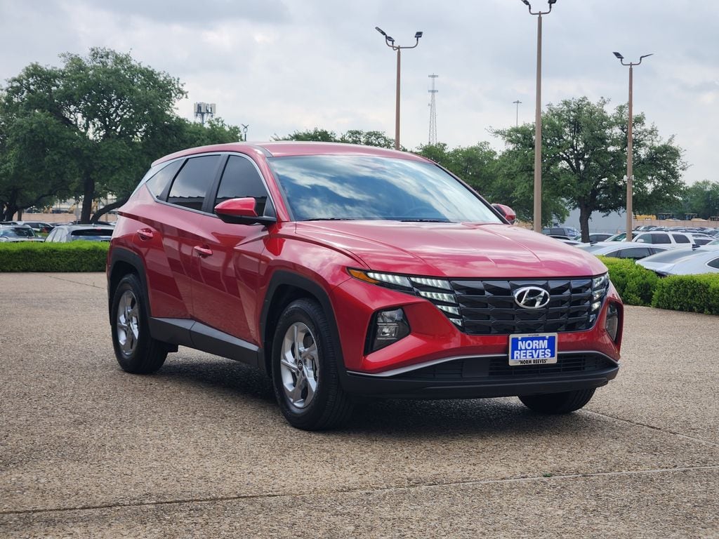 This 2023 Calypso Red Hyundai Tucson SE FWD is well equipped and includes these features and benefits: Option Group 01, Hyundai Certified Used Vehicles Certified, 2.5L I4 DGI DOHC 16V LEV3-ULEV70 187hp, Calypso Red, 3.648 Axle Ratio, 4-Wheel Disc Brakes, 6 Speakers, ABS brakes, Air Conditioning, Alloy wheels, AM/FM radio, Apple CarPlay & Android Auto, Auto High-beam Headlights, Brake assist, Bumpers: body-color, Cargo Net, Cargo Tray, Carpeted Floor Mats, Delay-off headlights, Driver door bin, Driver vanity mirror, Dual front impact airbags, Dual front side impact airbags, Electronic Stability Control, First Aid Kit, Four wheel independent suspension, Front and Rear Mudguards, Front anti-roll bar, Front Bucket Seats, Front Center Armrest, Front reading lights, Fully automatic headlights, Illuminated entry, Low tire pressure warning, Occupant sensing airbag, Outside temperature display, Overhead airbag, Overhead console, Panic alarm, Passenger door bin, Passenger vanity mirror, Power door mirrors, Power steering, Power windows, Radio data system, Radio: AM/FM/HD Audio System, Rear anti-roll bar, Rear Bumper Applique, Rear seat center armrest, Rear window defroster, Rear window wiper, Remote keyless entry, Security system, Speed control, Split folding rear seat, Spoiler, Stain & Odor Resistant Cloth Seat Trim, Steering wheel mounted audio controls, Tachometer, Telescoping steering wheel, Tilt steering wheel, Traction control, Trip computer, Variably intermittent wipers, Wheel Locks, and Wheels: 17" x 7.0J" Alloy. Certified. Hyundai Certified Used Vehicles Details:
