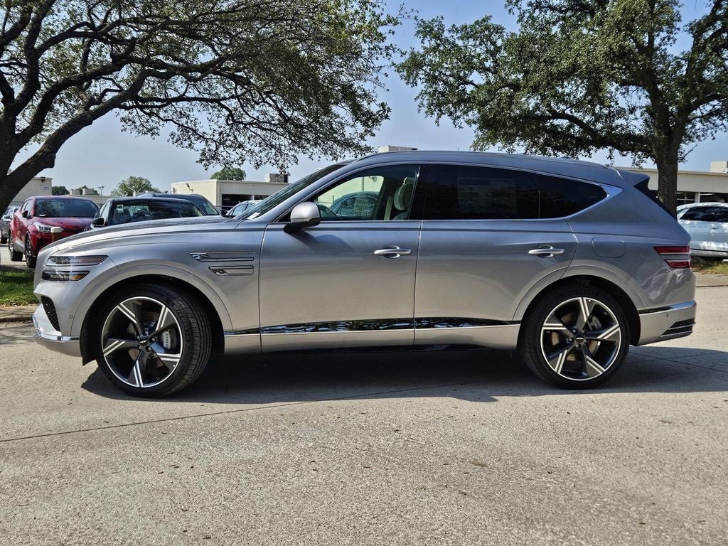 This 2025 Savile Silver Genesis GV80 3.5T Prestige AWD is well equipped and includes these features and benefits: Option Group 01, 18 Speakers, 4-Wheel Disc Brakes, ABS brakes, Adaptive suspension, Air Conditioning, Alloy wheels, AM/FM radio: SiriusXM, Anti-whiplash front head restraints, Auto High-beam Headlights, Auto tilt-away steering wheel, Auto-dimming door mirrors, Auto-dimming Rear-View mirror, Automatic temperature control, Brake assist, Bumpers: body-color, Cargo Tray, Compass, Delay-off headlights, Driver door bin, Driver vanity mirror, Dual front impact airbags, Dual front side impact airbags, Electronic Stability Control, Emergency communication system: Genesis Connected Services, Exterior Parking Camera Rear, Four wheel independent suspension, Fragrance Cartridge, Front anti-roll bar, Front Bucket Seats, Front Center Armrest, Front dual zone A/C, Front reading lights, Fully automatic headlights, Garage door transmitter: HomeLink, Genuine wood console insert, Genuine wood dashboard insert, Genuine wood door panel insert, Heads-Up Display, Heated & Ventilated Front Bucket Seats, Heated door mirrors, Heated front seats, Heated rear seats, Heated steering wheel, Illuminated entry, Knee airbag, Leather steering wheel, Low tire pressure warning, Memory seat, Nappa Leather Seating Surfaces, Navigation System, Occupant sensing airbag, Outside temperature display, Overhead airbag, Overhead console, Panic alarm, Passenger door bin, Passenger vanity mirror, Power door mirrors, Power driver seat, Power Liftgate, Power moonroof, Power passenger seat, Power steering, Power windows, Radio data system, Radio: AM/FM/SiriusXM/HD Bang & Olufsen Sound Sys, Rain sensing wipers, Rear air conditioning, Rear anti-roll bar, Rear reading lights, Rear seat center armrest, Rear side impact airbag, Rear window defroster, Rear window wiper, Remote keyless entry, Security system, Side Step, Speed control, Speed-sensing steering, Speed-Sensitive Wipers, Split folding rear seat, Spoiler, Steering wheel memory, Steering wheel mounted audio controls, Tachometer, Telescoping steering wheel, Tilt steering wheel, Traction control, Trip computer, Turn signal indicator mirrors, Variably intermittent wipers, Ventilated front seats, Ventilated rear seats, and Wheels: 22" x 9.5J Dark Gray Matte Alloy.