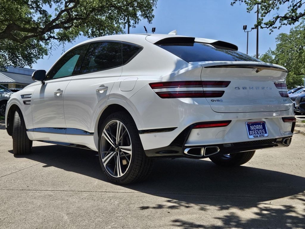 This 2025 Uyuni White Genesis GV80 Coupe 3.5T e-SC AWD is well equipped and includes these features and benefits: Option Group 01, 18 Speakers, 4-Wheel Disc Brakes, ABS brakes, Adaptive suspension, Air Conditioning, Alloy wheels, AM/FM radio: SiriusXM, Android Auto & Apple CarPlay, Anti-whiplash front head restraints, Auto High-beam Headlights, Auto tilt-away steering wheel, Auto-dimming door mirrors, Auto-dimming Rear-View mirror, Automatic temperature control, Brake assist, Bumpers: body-color, Compass, Delay-off headlights, Driver door bin, Driver vanity mirror, Dual front impact airbags, Dual front side impact airbags, Electronic Stability Control, Emergency communication system: Genesis Connected Services, Exterior Parking Camera Rear, Four wheel independent suspension, Front anti-roll bar, Front Bucket Seats, Front Center Armrest, Front dual zone A/C, Front reading lights, Fully automatic headlights, Garage door transmitter: HomeLink, Heads-Up Display, Heated & Ventilated Front Bucket Seats, Heated door mirrors, Heated front seats, Heated rear seats, Heated steering wheel, Illuminated entry, Knee airbag, Low tire pressure warning, Memory seat, Nappa Leather Seating Surfaces, Navigation System, Occupant sensing airbag, Outside temperature display, Overhead airbag, Overhead console, Panic alarm, Passenger door bin, Passenger vanity mirror, Power door mirrors, Power driver seat, Power Liftgate, Power moonroof, Power passenger seat, Power steering, Power windows, Radio data system, Radio: AM/FM/HD Bang & Olufsen Premium Audio, Rain sensing wipers, Rear air conditioning, Rear anti-roll bar, Rear reading lights, Rear seat center armrest, Rear side impact airbag, Rear window defroster, Remote keyless entry, Security system, Speed control, Speed-sensing steering, Speed-Sensitive Wipers, Split folding rear seat, Spoiler, Sport steering wheel, Steering wheel memory, Steering wheel mounted audio controls, Tachometer, Telescoping steering wheel, Tilt steering wheel, Traction control, Trip computer, Turn signal indicator mirrors, Variably intermittent wipers, Ventilated front seats, Ventilated rear seats, and Wheels: 22" Dark Gray Matte Sport Alloy.