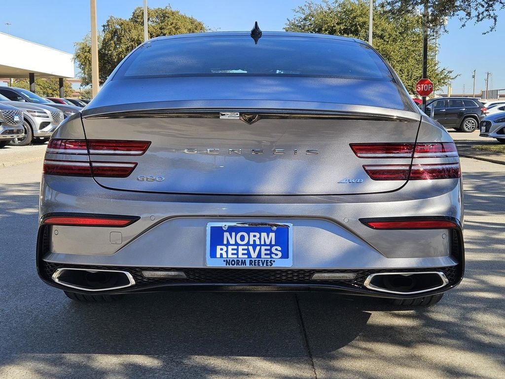 This 2026 Savile Silver Genesis G80 2.5T AWD is well equipped and includes these features and benefits: Option Group 01, 18 Speakers, 4-Wheel Disc Brakes, ABS brakes, Adaptive suspension, Air Conditioning, Alloy wheels, AM/FM radio: SiriusXM, Android Auto & Apple CarPlay, Anti-whiplash front head restraints, Auto High-beam Headlights, Auto tilt-away steering wheel, Auto-dimming door mirrors, Auto-dimming Rear-View mirror, Automatic temperature control, Bumpers: body-color, Cargo Blocks, Compass, Delay-off headlights, Driver door bin, Driver vanity mirror, Dual front impact airbags, Dual front side impact airbags, Electronic Stability Control, Emergency communication system: Genesis Connected Services, Exterior Parking Camera Rear, First Aid Kit, Four wheel independent suspension, Front anti-roll bar, Front Bucket Seats, Front Center Armrest, Front dual zone A/C, Front reading lights, Fully automatic headlights, Garage door transmitter: HomeLink, Heated and Ventilated Front Bucket Seats, Heated door mirrors, Heated front seats, Heated rear seats, Heated steering wheel, Illuminated entry, Knee airbag, Leather Seating Surfaces, Leather steering wheel, Low tire pressure warning, Memory seat, Navigation System, NFC Key Card, Occupant sensing airbag, Outside temperature display, Overhead airbag, Overhead console, Panic alarm, Passenger door bin, Passenger vanity mirror, Power door mirrors, Power driver seat, Power moonroof, Power passenger seat, Power steering, Power windows, Radio data system, Radio: AM/FM/HD Bang & Olufsen Premium Audio System, Rain sensing wipers, Rear air conditioning, Rear anti-roll bar, Rear Bumper Applique, Rear reading lights, Rear seat center armrest, Rear side impact airbag, Rear Window Blind, Rear window defroster, Remote keyless entry, Security system, Speed control, Speed-sensing steering, Speed-Sensitive Wipers, Steering wheel memory, Steering wheel mounted audio controls, Tachometer, Telescoping steering wheel, Tilt steering wheel, Traction control, Trip computer, Turn signal indicator mirrors, Variably intermittent wipers, Ventilated front seats, and Wheels: 20" x 8.5J Front and 20" x 9.5J Rear Sport Alloy.