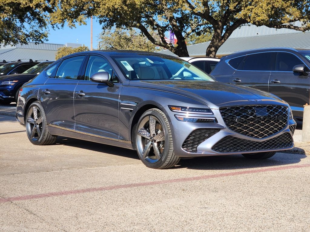 This 2026 Ceres Blue Genesis G80 3.5T AWD is well equipped and includes these features and benefits: Option Group 01, 18 Speakers, 4-Wheel Disc Brakes, ABS brakes, Adaptive suspension, Air Conditioning, Alloy wheels, AM/FM radio: SiriusXM, Android Auto & Apple CarPlay, Anti-whiplash front head restraints, Auto High-beam Headlights, Auto tilt-away steering wheel, Auto-dimming door mirrors, Auto-dimming Rear-View mirror, Automatic temperature control, Bumpers: body-color, Compass, Delay-off headlights, Driver door bin, Driver vanity mirror, Dual front impact airbags, Dual front side impact airbags, Electronic Stability Control, Emergency communication system: Genesis Connected Services, Exterior Parking Camera Rear, First Aid Kit, Floating Wheel Cap, Four wheel independent suspension, Front anti-roll bar, Front Bucket Seats, Front Center Armrest, Front dual zone A/C, Front reading lights, Fully automatic headlights, Garage door transmitter: HomeLink, Heads-Up Display, Heated and Ventilated Front Bucket Seats, Heated door mirrors, Heated front seats, Heated rear seats, Heated steering wheel, Illuminated entry, Knee airbag, Leather steering wheel, Low tire pressure warning, Memory seat, Nappa Leather Seating Surfaces, Navigation System, NFC Key Card, Occupant sensing airbag, Outside temperature display, Overhead airbag, Overhead console, Panic alarm, Passenger door bin, Passenger vanity mirror, Power door mirrors, Power driver seat, Power moonroof, Power passenger seat, Power steering, Power windows, Radio data system, Radio: AM/FM/HD Bang & Olufsen Premium Audio System, Rain sensing wipers, Rear air conditioning, Rear anti-roll bar, Rear Bumper Applique, Rear reading lights, Rear seat center armrest, Rear side impact airbag, Rear Window Blind, Rear window defroster, Remote keyless entry, Roadside Assistance Kit, Security system, Speed control, Speed-sensing steering, Speed-Sensitive Wipers, Steering wheel memory, Steering wheel mounted audio controls, Tachometer, Telescoping steering wheel, Tilt steering wheel, Traction control, Trip computer, Turn signal indicator mirrors, Variably intermittent wipers, Ventilated front seats, and Wheels: 20" x 8.5J Front and 20" x 9.5J Rear Sport Alloy.
