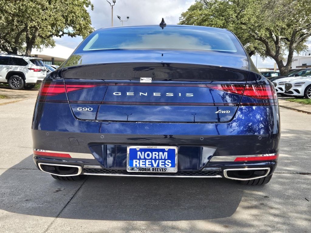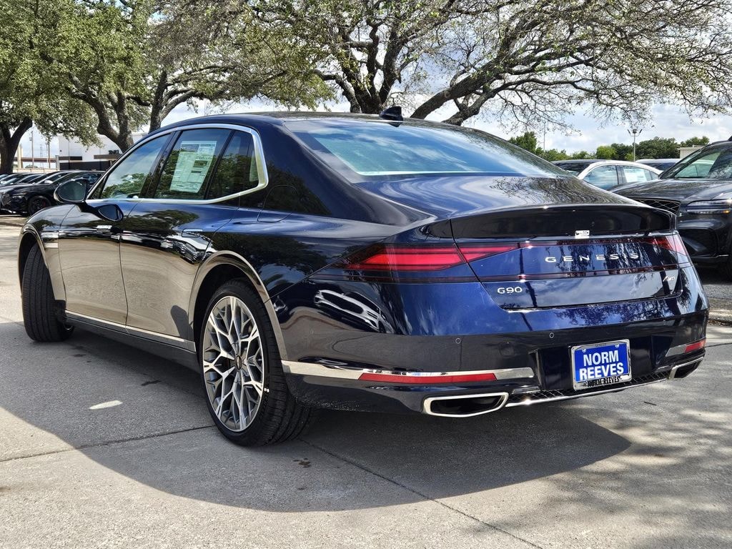 This 2026 Capri Blue Genesis G90 3.5T e-SC AWD is well equipped and includes these features and benefits: Option Group 01, 4-Wheel Disc Brakes, ABS brakes, Adaptive suspension, Air Conditioning, Alloy wheels, AM/FM radio: SiriusXM, Anti-whiplash front head restraints, Auto High-beam Headlights, Auto tilt-away steering wheel, Auto-dimming door mirrors, Auto-dimming Rear-View mirror, Automatic temperature control, Brake assist, Bumpers: body-color, Cargo Block, Compass, Delay-off headlights, Driver door bin, Driver vanity mirror, Dual front impact airbags, Dual front side impact airbags, Electronic Stability Control, Emergency communication system: Genesis Connected Services, Exterior Parking Camera Rear, First Aid Kit, Four wheel independent suspension, Front anti-roll bar, Front Bucket Seats, Front Center Armrest, Front dual zone A/C, Front reading lights, Fully automatic headlights, Garage door transmitter: HomeLink, Genuine wood console insert, Heads-Up Display, Heated & Ventilated Front Bucket Seats, Heated front seats, Heated rear seats, Heated steering wheel, Illuminated entry, Knee airbag, Low tire pressure warning, Memory seat, Nappa Leather Seating Surfaces, Navigation System, Occupant sensing airbag, Outside temperature display, Overhead airbag, Overhead console, Panic alarm, Passenger door bin, Passenger vanity mirror, Power adjustable rear head restraints, Power door mirrors, Power driver seat, Power moonroof, Power passenger seat, Power steering, Power windows, Radio data system, Radio: AM/FM Bang & Olufsen 3D Prem Audio System, Rain sensing wipers, Rear air conditioning, Rear anti-roll bar, Rear reading lights, Rear seat center armrest, Rear side impact airbag, Rear Window Blind, Rear window defroster, Remote keyless entry, Security system, Speed control, Speed-sensing steering, Speed-Sensitive Wipers, Steering wheel memory, Steering wheel mounted audio controls, Tachometer, Telescoping steering wheel, Tilt steering wheel, Traction control, Trip computer, Variably intermittent wipers, Ventilated front seats, Ventilated rear seats, and Wheels: 21" x 8.5J Fr & 21" x 9.5J Rr Alloy.