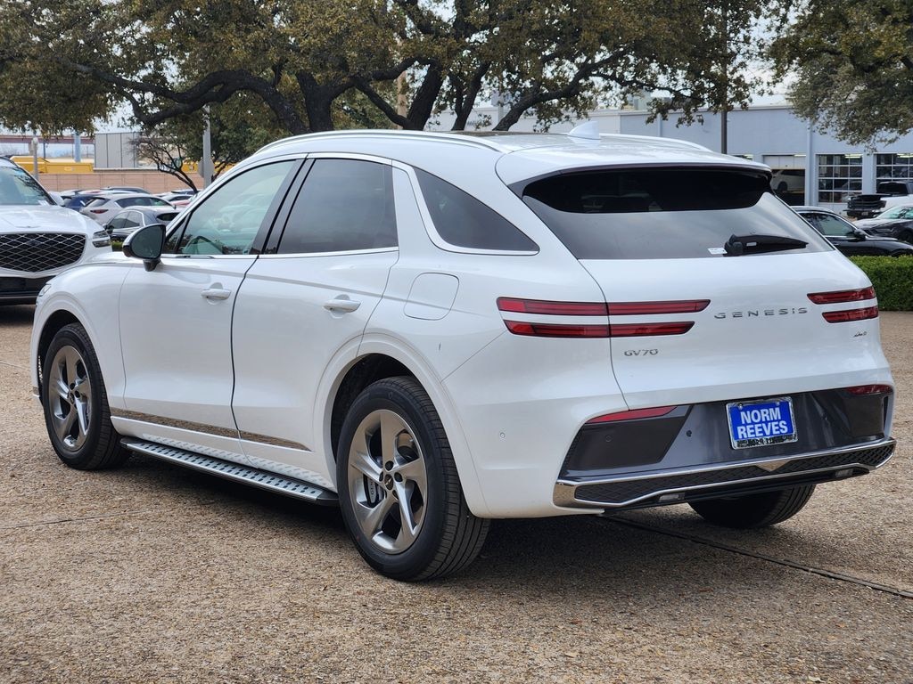 This 2026 Uyuni White Genesis GV70 2.5T Advanced AWD is well equipped and includes these features and benefits: Option Group 01, 16 Speakers, 4-Wheel Disc Brakes, ABS brakes, Air Conditioning, Alloy wheels, AM/FM radio: SiriusXM, Android Auto & Apple CarPlay, Anti-whiplash front head restraints, Auto High-beam Headlights, Auto-dimming door mirrors, Auto-dimming Rear-View mirror, Automatic temperature control, Brake assist, Bumpers: body-color, Delay-off headlights, Driver door bin, Driver vanity mirror, Dual front impact airbags, Dual front side impact airbags, Electronic Stability Control, Emergency communication system: Genesis Connected Services, Exterior Parking Camera Rear, Four wheel independent suspension, Front anti-roll bar, Front Bucket Seats, Front Center Armrest w/Storage, Front dual zone A/C, Front reading lights, Fully automatic headlights, Garage door transmitter: HomeLink, Heated and Ventilated Front Bucket Seats, Heated door mirrors, Heated front seats, Heated steering wheel, Illuminated entry, Knee airbag, Leather Seating Surfaces, Leather steering wheel, Low tire pressure warning, Memory seat, Navigation System, Occupant sensing airbag, Outside temperature display, Overhead airbag, Overhead console, Panic alarm, Passenger door bin, Passenger vanity mirror, Power door mirrors, Power driver seat, Power Liftgate, Power moonroof, Power passenger seat, Power steering, Power windows, Radio: 14.5" Navigation System with AM/FM/HD, Rain sensing wipers, Rear anti-roll bar, Rear reading lights, Rear seat center armrest, Rear window defroster, Rear window wiper, Remote keyless entry, Security system, Side Steps, Speed control, Speed-sensing steering, Speed-Sensitive Wipers, Split folding rear seat, Spoiler, Steering wheel memory, Steering wheel mounted audio controls, Tachometer, Telescoping steering wheel, Tilt steering wheel, Traction control, Trip computer, Turn signal indicator mirrors, Variably intermittent wipers, Ventilated front seats, and Wheels: 19" Light Hyper Silver Alloy.