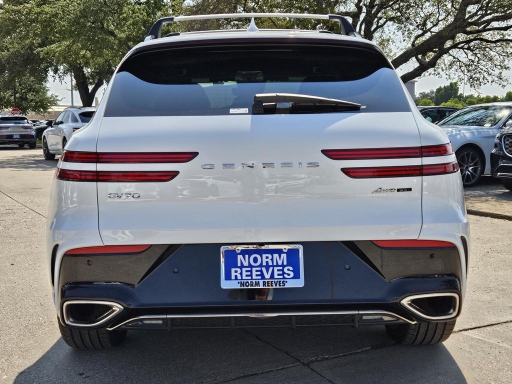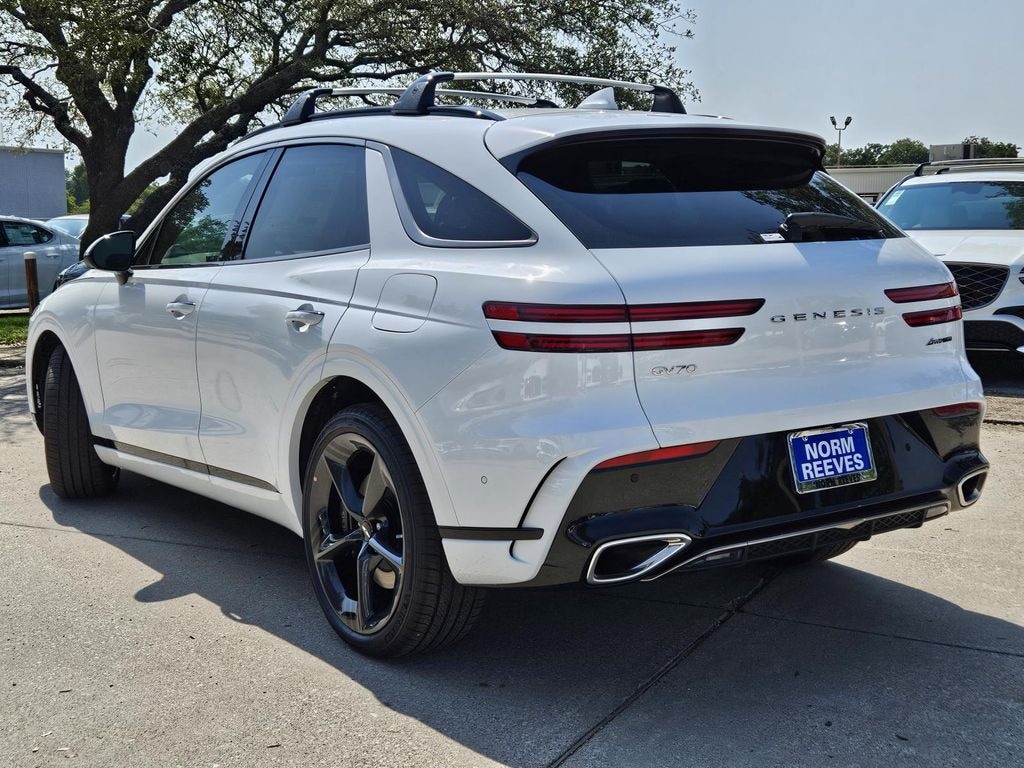 This 2026 Alta White Genesis GV70 3.5T Sport Prestige AWD is well equipped and includes these features and benefits: Option Group 01, 16 Speakers, 4-Wheel Disc Brakes, ABS brakes, Adaptive suspension, Air Conditioning, Alloy wheels, AM/FM radio: SiriusXM, Android Auto & Apple CarPlay, Anti-whiplash front head restraints, Auto High-beam Headlights, Auto-dimming door mirrors, Auto-dimming Rear-View mirror, Automatic temperature control, Brake assist, Bumpers: body-color, Cargo Tray, Delay-off headlights, Driver door bin, Driver vanity mirror, Dual front impact airbags, Dual front side impact airbags, Electronic Stability Control, Emergency communication system: Genesis Connected Services, Exterior Parking Camera Rear, First Aid Kit, Four wheel independent suspension, Front anti-roll bar, Front Bucket Seats, Front Center Armrest w/Storage, Front dual zone A/C, Front reading lights, Fully automatic headlights, Garage door transmitter: HomeLink, Heads-Up Display, Heated & Ventilated Front Bucket Seats, Heated door mirrors, Heated front seats, Heated rear seats, Heated steering wheel, Illuminated entry, Knee airbag, Leather steering wheel, Low tire pressure warning, Memory seat, Nappa Leather Seating Surfaces, Navigation System, NFC Key Card, Occupant sensing airbag, Outside temperature display, Overhead airbag, Overhead console, Panic alarm, Passenger door bin, Passenger vanity mirror, Power door mirrors, Power driver seat, Power Liftgate, Power moonroof, Power passenger seat, Power steering, Power windows, Radio: 14.5" Navigation System w/AM/FM/HD Radio, Rain sensing wipers, Rear air conditioning, Rear anti-roll bar, Rear reading lights, Rear seat center armrest, Rear window defroster, Rear window wiper, Remote keyless entry, Roof Rack Cross Bars, Security system, Speed control, Speed-sensing steering, Speed-Sensitive Wipers, Split folding rear seat, Spoiler, Steering wheel memory, Steering wheel mounted audio controls, Tachometer, Telescoping steering wheel, Tilt steering wheel, Traction control, Trip computer, Turn signal indicator mirrors, Variably intermittent wipers, Ventilated front seats, and Wheels: 21" Dark Sputtering Alloy.
