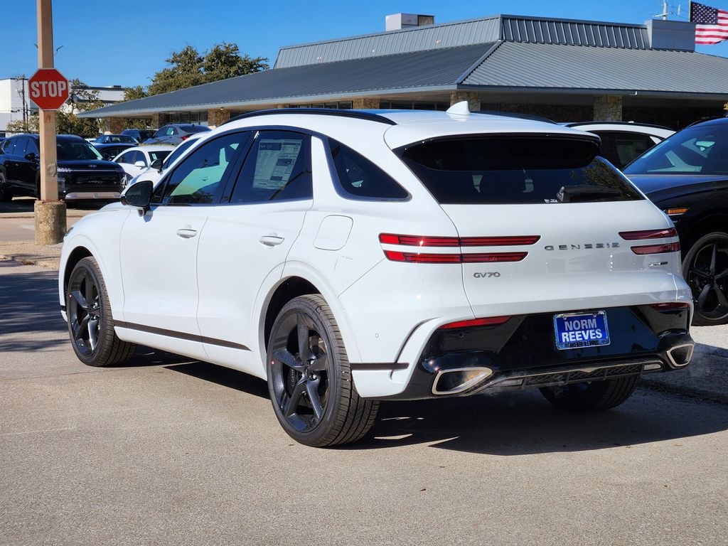 This 2026 Alta White Genesis GV70 3.5T Sport Prestige AWD is well equipped and includes these features and benefits: Option Group 01, 16 Speakers, 4-Wheel Disc Brakes, ABS brakes, Adaptive suspension, Air Conditioning, Alloy wheels, AM/FM radio: SiriusXM, Android Auto & Apple CarPlay, Anti-whiplash front head restraints, Auto High-beam Headlights, Auto-dimming door mirrors, Auto-dimming Rear-View mirror, Automatic temperature control, Brake assist, Bumpers: body-color, Cargo Cover, Delay-off headlights, Driver door bin, Driver vanity mirror, Dual front impact airbags, Dual front side impact airbags, Electronic Stability Control, Emergency communication system: Genesis Connected Services, Exterior Parking Camera Rear, First Aid Kit, Four wheel independent suspension, Front anti-roll bar, Front Bucket Seats, Front Center Armrest w/Storage, Front dual zone A/C, Front reading lights, Fully automatic headlights, Garage door transmitter: HomeLink, Heads-Up Display, Heated and Ventilated Front Bucket Seats, Heated door mirrors, Heated front seats, Heated rear seats, Heated steering wheel, Illuminated Door Scuff Plates, Illuminated entry, Knee airbag, Leather steering wheel, Low tire pressure warning, Memory seat, Nappa Leather Seating Surfaces, Navigation System, NFC Key Card, Occupant sensing airbag, Outside temperature display, Overhead airbag, Overhead console, Panic alarm, Passenger door bin, Passenger vanity mirror, Power door mirrors, Power driver seat, Power Liftgate, Power moonroof, Power passenger seat, Power steering, Power windows, Radio: 14.5" Navigation System with AM/FM/HD, Rain sensing wipers, Rear air conditioning, Rear anti-roll bar, Rear reading lights, Rear seat center armrest, Rear window defroster, Rear window wiper, Remote keyless entry, Security system, Speed control, Speed-sensing steering, Speed-Sensitive Wipers, Split folding rear seat, Spoiler, Steering wheel memory, Steering wheel mounted audio controls, Tachometer, Telescoping steering wheel, Tilt steering wheel, Traction control, Trip computer, Turn signal indicator mirrors, Up Seatback Cargo Mat, Variably intermittent wipers, Ventilated front seats, and Wheels: 21" Dark Sputtering Alloy.