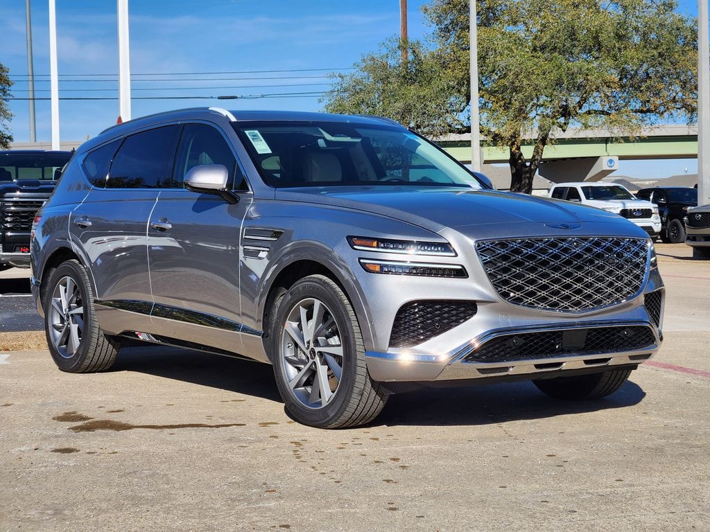 This 2026 Savile Silver Genesis GV80 3.5T Advanced AWD is well equipped and includes these features and benefits: Option Group 01, 18 Speakers, 3rd row seats: split-bench, 4-Wheel Disc Brakes, ABS brakes, Adaptive suspension, Air Conditioning, All Season Fitted Liners, Alloy wheels, AM/FM radio: SiriusXM, Anti-whiplash front head restraints, Auto High-beam Headlights, Auto tilt-away steering wheel, Auto-dimming door mirrors, Auto-dimming Rear-View mirror, Automatic temperature control, Brake assist, Bumpers: body-color, Cargo Net, Compass, Delay-off headlights, Driver door bin, Driver vanity mirror, Dual front impact airbags, Dual front side impact airbags, Electronic Stability Control, Emergency communication system: Genesis Connected Services, Exterior Parking Camera Rear, First Aid Kit, Four wheel independent suspension, Front anti-roll bar, Front Bucket Seats, Front Center Armrest, Front dual zone A/C, Front reading lights, Fully automatic headlights, Garage door transmitter: HomeLink, Genuine wood console insert, Genuine wood dashboard insert, Genuine wood door panel insert, Heads-Up Display, Heated and Ventilated Front Bucket Seats, Heated door mirrors, Heated front seats, Heated rear seats, Heated steering wheel, Illuminated entry, Knee airbag, Leather Seating Surfaces, Leather steering wheel, Low tire pressure warning, Memory seat, Navigation System, NFC Key Card, Occupant sensing airbag, Outside temperature display, Overhead airbag, Overhead console, Panic alarm, Passenger door bin, Passenger vanity mirror, Power door mirrors, Power driver seat, Power Liftgate, Power moonroof, Power passenger seat, Power steering, Power windows, Radio data system, Radio: AM/FM/HD Bose Premium Sound System, Rain sensing wipers, Rear air conditioning, Rear anti-roll bar, Rear dual zone A/C, Rear reading lights, Rear seat center armrest, Rear side impact airbag, Rear window defroster, Rear window wiper, Reclining 3rd row seat, Remote keyless entry, Security system, Speed control, Speed-sensing steering, Speed-Sensitive Wipers, Split folding rear seat, Spoiler, Steering wheel memory, Steering wheel mounted audio controls, Tachometer, Telescoping steering wheel, Tilt steering wheel, Traction control, Trip computer, Turn signal indicator mirrors, Variably intermittent wipers, Ventilated front seats, and Wheels: 20" x 8.5J Dark Gray Matte Alloy.
