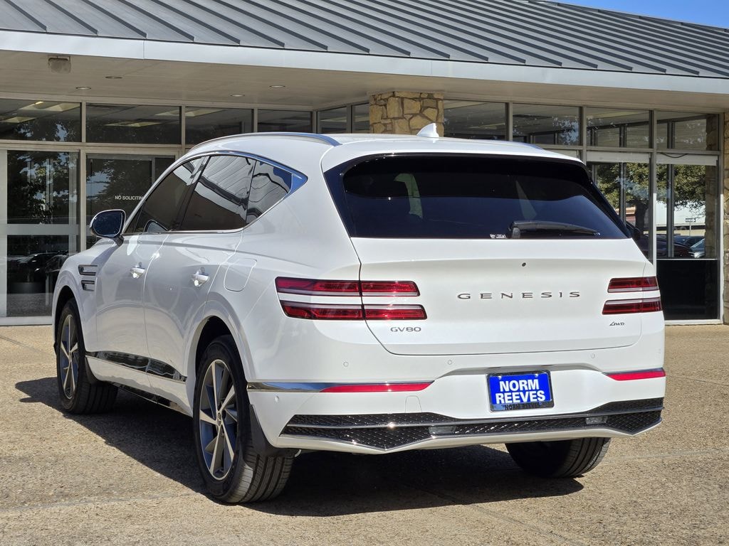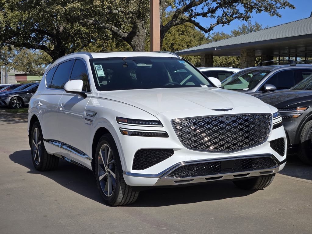 This 2026 Uyuni White Genesis GV80 2.5T Advanced AWD is well equipped and includes these features and benefits: Option Group 01, 18 Speakers, 3rd row seats: split-bench, 4-Wheel Disc Brakes, ABS brakes, Air Conditioning, Alloy wheels, AM/FM radio: SiriusXM, Anti-whiplash front head restraints, Auto High-beam Headlights, Auto tilt-away steering wheel, Auto-dimming door mirrors, Auto-dimming Rear-View mirror, Auto-leveling suspension, Automatic temperature control, Brake assist, Bumpers: body-color, Cargo Net, Compass, Delay-off headlights, Driver door bin, Driver vanity mirror, Dual front impact airbags, Dual front side impact airbags, Electronic Stability Control, Emergency communication system: Genesis Connected Services, Exterior Parking Camera Rear, First Aid Kit, Four wheel independent suspension, Front and Rear Mudguards, Front anti-roll bar, Front Bucket Seats, Front Center Armrest, Front dual zone A/C, Front reading lights, Fully automatic headlights, Garage door transmitter: HomeLink, Genuine wood console insert, Genuine wood dashboard insert, Genuine wood door panel insert, Heated and Ventilated Front Bucket Seats, Heated door mirrors, Heated front seats, Heated steering wheel, Illuminated entry, Knee airbag, Leather Seating Surfaces, Leather steering wheel, Low tire pressure warning, Memory seat, Navigation System, NFC Key Card, Occupant sensing airbag, Outside temperature display, Overhead airbag, Overhead console, Panic alarm, Passenger door bin, Passenger vanity mirror, Power door mirrors, Power driver seat, Power Liftgate, Power moonroof, Power passenger seat, Power steering, Power windows, Radio data system, Radio: AM/FM/HD Bose Premium Sound System, Rain sensing wipers, Rear air conditioning, Rear anti-roll bar, Rear dual zone A/C, Rear reading lights, Rear seat center armrest, Rear side impact airbag, Rear window defroster, Rear window wiper, Reclining 3rd row seat, Remote keyless entry, Security system, Speed control, Speed-sensing steering, Speed-Sensitive Wipers, Split folding rear seat, Spoiler, Steering wheel memory, Steering wheel mounted audio controls, Tachometer, Telescoping steering wheel, Tilt steering wheel, Traction control, Trip computer, Turn signal indicator mirrors, Variably intermittent wipers, Ventilated front seats, and Wheels: 20" x 8.5J Dark Gray Matte Alloy.