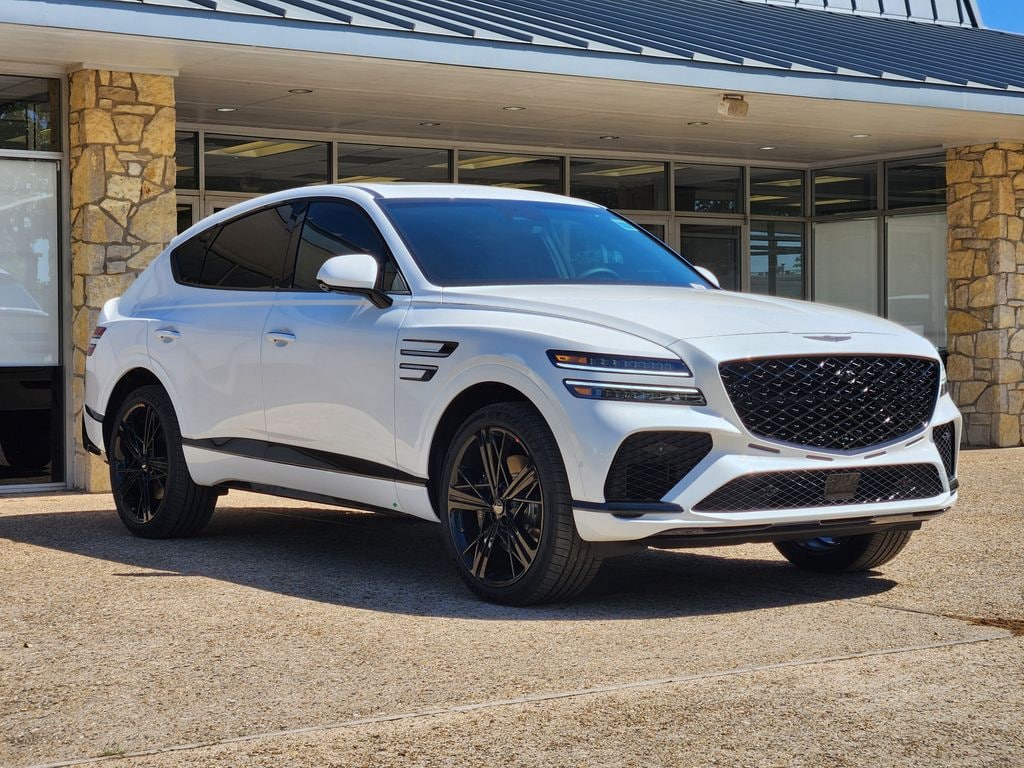 This 2026 Uyuni White Genesis GV80 Coupe 3.5T e-SC AWD is well equipped and includes these features and benefits: Option Group 01, 18 Speakers, 4-Wheel Disc Brakes, ABS brakes, Adaptive suspension, Air Conditioning, All Season Fitted Liners, Alloy wheels, AM/FM radio: SiriusXM, Android Auto & Apple CarPlay, Anti-whiplash front head restraints, Auto High-beam Headlights, Auto tilt-away steering wheel, Auto-dimming door mirrors, Auto-dimming Rear-View mirror, Automatic temperature control, Brake assist, Bumpers: body-color, Cargo Net, Compass, Delay-off headlights, Driver door bin, Driver vanity mirror, Dual front impact airbags, Dual front side impact airbags, Electronic Stability Control, Emergency communication system: Genesis Connected Services, Exterior Parking Camera Rear, Four wheel independent suspension, Front anti-roll bar, Front Bucket Seats, Front Center Armrest, Front dual zone A/C, Front reading lights, Fully automatic headlights, Garage door transmitter: HomeLink, Genuine wood console insert, Genuine wood dashboard insert, Heads-Up Display, Heated and Ventilated Front Bucket Seats, Heated door mirrors, Heated front seats, Heated rear seats, Heated steering wheel, Illuminated entry, Knee airbag, Low tire pressure warning, Memory seat, Nappa Leather Seating Surfaces, Navigation System, NFC Key Card, Occupant sensing airbag, Outside temperature display, Overhead airbag, Overhead console, Panic alarm, Passenger door bin, Passenger vanity mirror, Power door mirrors, Power driver seat, Power Liftgate, Power moonroof, Power passenger seat, Power steering, Power windows, Radio data system, Radio: AM/FM/HD Bang & Olufsen Premium Audio, Rain sensing wipers, Rear air conditioning, Rear anti-roll bar, Rear reading lights, Rear seat center armrest, Rear side impact airbag, Rear window defroster, Remote keyless entry, Security system, Speed control, Speed-sensing steering, Speed-Sensitive Wipers, Split folding rear seat, Spoiler, Sport steering wheel, Steering wheel memory, Steering wheel mounted audio controls, Tachometer, Telescoping steering wheel, Tilt steering wheel, Traction control, Trip computer, Turn signal indicator mirrors, Variably intermittent wipers, Ventilated front seats, Ventilated rear seats, and Wheels: 22" x 9.5J Black Matte Sport Alloy.