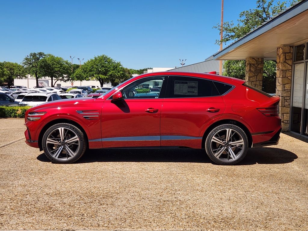 This 2026 Mauna Red Genesis GV80 Coupe 3.5T e-SC AWD is well equipped and includes these features and benefits: Option Group 01, 18 Speakers, 4-Wheel Disc Brakes, ABS brakes, Adaptive suspension, Air Conditioning, All Season Fitted Liners, Alloy wheels, AM/FM radio: SiriusXM, Android Auto & Apple CarPlay, Anti-whiplash front head restraints, Auto High-beam Headlights, Auto tilt-away steering wheel, Auto-dimming door mirrors, Auto-dimming Rear-View mirror, Automatic temperature control, Brake assist, Bumpers: body-color, Cargo Mat, Compass, Delay-off headlights, Driver door bin, Driver vanity mirror, Dual front impact airbags, Dual front side impact airbags, Electronic Stability Control, Emergency communication system: Genesis Connected Services, Exterior Parking Camera Rear, First Aid Kit, Four wheel independent suspension, Front anti-roll bar, Front Bucket Seats, Front Center Armrest, Front dual zone A/C, Front reading lights, Fully automatic headlights, Garage door transmitter: HomeLink, Heads-Up Display, Heated and Ventilated Front Bucket Seats, Heated door mirrors, Heated front seats, Heated rear seats, Heated steering wheel, Illuminated entry, Knee airbag, Low tire pressure warning, Memory seat, Nappa Leather Seating Surfaces, Navigation System, NFC Key Card, Occupant sensing airbag, Outside temperature display, Overhead airbag, Overhead console, Panic alarm, Passenger door bin, Passenger vanity mirror, Power door mirrors, Power driver seat, Power Liftgate, Power moonroof, Power passenger seat, Power steering, Power windows, Radio data system, Radio: AM/FM/HD Bang & Olufsen Premium Audio, Rain sensing wipers, Rear air conditioning, Rear anti-roll bar, Rear reading lights, Rear seat center armrest, Rear side impact airbag, Rear window defroster, Remote keyless entry, Security system, Severe Weather Kit, Speed control, Speed-sensing steering, Speed-Sensitive Wipers, Split folding rear seat, Spoiler, Sport steering wheel, Steering wheel memory, Steering wheel mounted audio controls, Tachometer, Telescoping steering wheel, Tilt steering wheel, Traction control, Trip computer, Turn signal indicator mirrors, Variably intermittent wipers, Ventilated front seats, Ventilated rear seats, and Wheels: 22" x 9.5J Dark Gray Matte Sport Alloy.