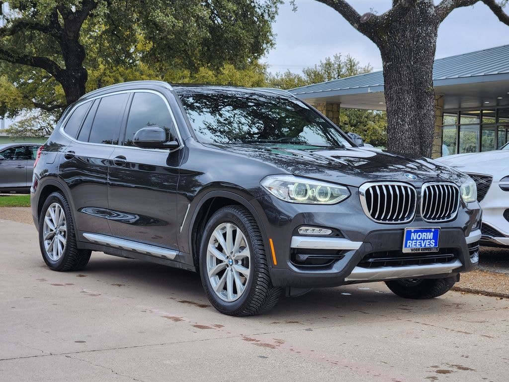This 2019 Dark Graphite Metallic BMW X3 sDrive30i RWD is well equipped and includes these features and benefits: Convenience Package (LED Headlights w/Cornering Lights, Lumbar Support, Panoramic Moonroof, and SiriusXM Satellite Radio), Driving Assistance Package (Active Blind Spot Detection, Active Driving Assistant, and Lane Departure Warning System), X3 sDrive30i, 2.0L I4 TwinPower Turbo, 8-Speed Automatic, Advanced Real-Time Traffic Information, Apple CarPlay Compatibility, Memory seat, Navigation System, Remote Services, 12 Speakers, 3.39 Axle Ratio, 4-Wheel Disc Brakes, ABS brakes, Air Conditioning, Alloy wheels, AM/FM radio, Ambient Lighting, Auto-dimming door mirrors, Auto-dimming Rear-View mirror, Automatic temperature control, Brake assist, Bumpers: body-color, Comfort Access Keyless Entry, Delay-off headlights, Driver door bin, Driver vanity mirror, Dual front impact airbags, Dual front side impact airbags, Electronic Stability Control, Emergency communication system: BMW Assist eCall, Exterior Parking Camera Rear, Four wheel independent suspension, Front anti-roll bar, Front Bucket Seats, Front Center Armrest, Front dual zone A/C, Front fog lights, Front reading lights, Fully automatic headlights, Garage door transmitter, Genuine wood dashboard insert, Genuine wood door panel insert, Hands-Free Bluetooth & USB Audio Connection, Heated door mirrors, Heated Front Seats, Hi-Fi Sound System, Illuminated entry, Knee airbag, Low tire pressure warning, Occupant sensing airbag, Outside temperature display, Overhead airbag, Panic alarm, Passenger door bin, Passenger vanity mirror, Power door mirrors, Power driver seat, Power Front Seats, Power Liftgate, Power passenger seat, Power steering, Power windows, Radio data system, Radio: AM/FM Stereo w/HD, Rain sensing wipers, Rear air conditioning, Rear anti-roll bar, Rear reading lights, Rear seat center armrest, Rear window defroster, Rear window wiper, Remote keyless entry, Roof rack: rails only, Security system, SensaTec Upholstery, Speed control, Speed-sensing steering, Speed-Sensitive Wipers, Split folding rear seat, Spoiler, Sport Bucket Seats, Sport Leather Steering Wheel, Sport steering wheel, Steering wheel mounted audio controls, Tachometer, Telescoping steering wheel, Tilt steering wheel, Traction control, Trip computer, Turn signal indicator mirrors, Variably intermittent wipers, Wheels: 18" x 7.0" Y-Spoke (Style 688), and Wheels: 19" x 7.5" V-Spoke (Style 692) X3 sDrive30i, 2.0L I4 TwinPower Turbo, 8-Speed Automatic, Active Blind Spot Detection, Active Driving Assistant, Advanced Real-Time Traffic Information, Apple CarPlay Compatibility, Convenience Package, Driving Assistance Package, Lane Departure Warning System, LED Headlights w/Cornering Lights, Lumbar Support, Memory seat, Navigation System, Panoramic Moonroof, Remote Services, SiriusXM Satellite Radio.