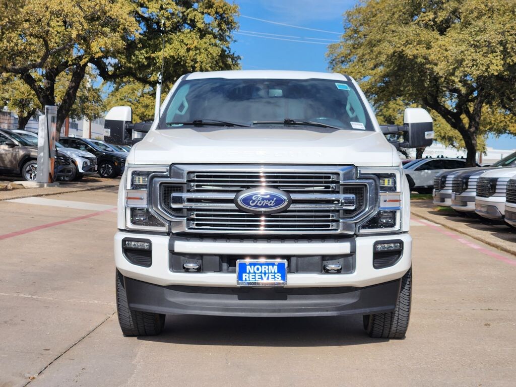 This 2022 Star White Metallic Tri-Coat Ford F-250SD Limited 4WD is well equipped and includes these features and benefits: GVWR: 10,000 lb Payload Package, Order Code 708A, F-250SD Limited, Power Stroke 6.7L V8 DI 32V OHV Turbodiesel, 10-Speed Automatic, 4WD, Star White Metallic Tri-Coat, Admiral Blue/Light Slate Leather, 10 Speakers, 20" Polished Aluminum Wheels, 3.31 Axle Ratio, 4-Wheel Disc Brakes, ABS brakes, Adjustable pedals, Advanced Security Pack Inclination Sensor Removal, Air Conditioning, Alloy wheels, AM/FM radio: SiriusXM with 360L, Auto High-beam Headlights, Auto tilt-away steering wheel, Auto-dimming Rear-View mirror, Automatic temperature control, Brake assist, Bumpers: body-color, Compass, Delay-off headlights, Driver door bin, Driver vanity mirror, Dual front impact airbags, Dual front side impact airbags, Electronic Stability Control, Emergency communication system: SYNC 4 911 Assist, Exterior Parking Camera Rear, Flow-Through Console, Front anti-roll bar, Front Bucket Seats, Front Center Armrest, Front dual zone A/C, Front fog lights, Front reading lights, Fully automatic headlights, Garage door transmitter, Heated door mirrors, Heated front seats, Heated rear seats, Heated steering wheel, Illuminated entry, Leather steering wheel, Low tire pressure warning, Memory seat, Navigation system: Connected Navigation, Outside temperature display, Overhead airbag, Overhead console, Panic alarm, Passenger door bin, Passenger vanity mirror, Pedal memory, Power door mirrors, Power driver seat, Power moonroof, Power passenger seat, Power steering, Power windows, Radio data system, Radio: B&O Sound System by Bang & Olufsen, Rain sensing wipers, Rear Parking Sensors, Rear reading lights, Rear seat center armrest, Rear step bumper, Rear window defroster, Remote keyless entry, Security system, SiriusXM Radio w/360L, Speed control, Speed-sensing steering, Split folding rear seat, Steering wheel memory, Steering wheel mounted A/C controls, Steering wheel mounted audio controls, SYNC 4 w/Enhanced Voice Recognition, Tachometer, Telescoping steering wheel, Tilt steering wheel, Traction control, Trip computer, Turn signal indicator mirrors, Ultimate Trailer Tow Camera System, Unique Limited 2-Tone Leather 40/Console/40 Seats, Variably intermittent wipers, and Ventilated front seats. F-250SD Limited, Power Stroke 6.7L V8 DI 32V OHV Turbodiesel, 10-Speed Automatic, 4WD, Star White Metallic Tri-Coat, Admiral Blue/Light Slate Leather. CARFAX One-Owner.