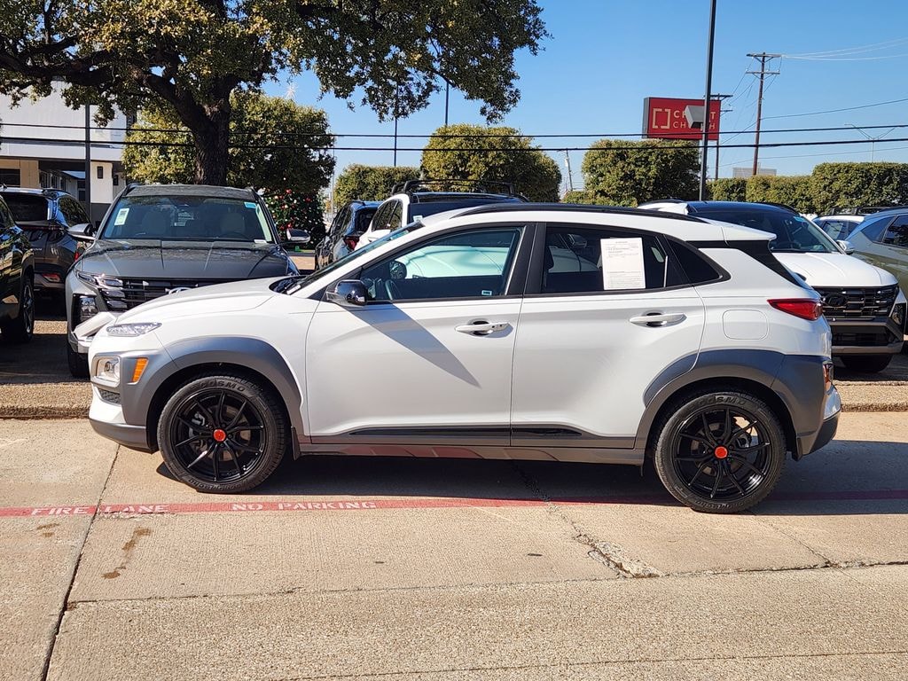This 2021 Chalk White Hyundai Kona NIGHT FWD is well equipped and includes these features and benefits: Cargo Package (Cargo Net and Cargo Tray), Option Group 01, Kona NIGHT, I4, 7-Speed Automatic, FWD, 3.579 Axle Ratio, 4-Wheel Disc Brakes, 8 Speakers, ABS brakes, Air Conditioning, Alloy wheels, AM/FM radio: SiriusXM, Apple CarPlay & Android Auto, Brake assist, Bumpers: body-color, Carpeted Floor Mats, Cloth Seat Trim, Delay-off headlights, Driver door bin, Driver vanity mirror, Dual front impact airbags, Dual front side impact airbags, Electronic Stability Control, Emergency communication system: Blue Link Connected Car Service (3-year complimentary subscription), Exterior Parking Camera Rear, First Aid Kit, Front & Rear Mudguards, Front anti-roll bar, Front Bucket Seats, Front Center Armrest, Front reading lights, Front wheel independent suspension, Fully automatic headlights, Heated door mirrors, Heated Front Bucket Seats, Heated front seats, Illuminated entry, Leather Shift Knob, Leather steering wheel, Low tire pressure warning, Occupant sensing airbag, Outside temperature display, Overhead airbag, Overhead console, Panic alarm, Passenger door bin, Passenger vanity mirror, Power door mirrors, Power driver seat, Power steering, Power windows, Radio: AM/FM/MP3/HD Radio/SiriusXM Audio System, Rear Bumper Applique, Rear seat center armrest, Rear window defroster, Rear window wiper, Remote keyless entry, Roof rack: rails only, Security system, Speed control, Speed-sensing steering, Split folding rear seat, Spoiler, Steering wheel mounted audio controls, Tachometer, Telescoping steering wheel, Tilt steering wheel, Traction control, Trip computer, Turn signal indicator mirrors, Variably intermittent wipers, and Wheels: 18 x 7.5J RAYS Semi-Gloss Black Alloy. Kona NIGHT, I4, 7-Speed Automatic, FWD. Clean CARFAX. CARFAX One-Owner.