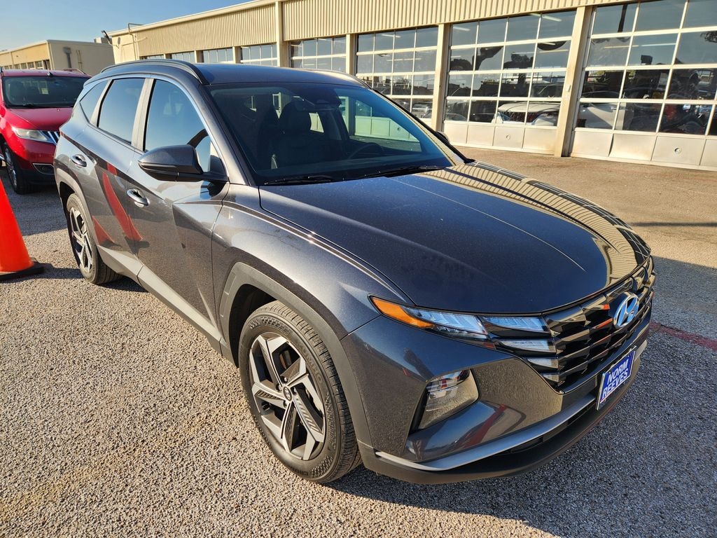 This 2023 Portofino Gray Hyundai Tucson SEL FWD is well equipped and includes these features and benefits: Cargo Package (Cargo Net, Cargo Tray, and First Aid Kit), Convenience Package (10.25" Digital Instrument Cluster, Auto-Dimming Interior Mirror w/Homelink, Dual Automatic Temperature Control, H-Tex Seat Trim, Leather-Wrapped Shift Knob, Leather-Wrapped Steering Wheel, LED Interior Lights (Room, Map), Option Group 02, Power Sunroof, Ultrasonic Rear Occupant Alert, and Wheels: 19" x 7.5J" Machine-Face Finish Alloy), Tucson SEL, 2.5L I4 DGI DOHC 16V LEV3-ULEV70 187hp, Portofino Gray, 3.648 Axle Ratio, 4-Wheel Disc Brakes, 6 Speakers, ABS brakes, Air Conditioning, Alloy wheels, AM/FM radio: SiriusXM, Apple CarPlay & Android Auto, Auto High-beam Headlights, Brake assist, Bumpers: body-color, Cargo Cover, Carpeted Floor Mats, Delay-off headlights, Driver door bin, Driver vanity mirror, Dual front impact airbags, Dual front side impact airbags, Electronic Stability Control, Emergency communication system: Blue Link Connected Car Service (3-year complimentary subscription), Four wheel independent suspension, Front anti-roll bar, Front Bucket Seats, Front Center Armrest, Front reading lights, Fully automatic headlights, Heated door mirrors, Heated Front Bucket Seats, Heated front seats, Illuminated entry, Low tire pressure warning, Occupant sensing airbag, Outside temperature display, Overhead airbag, Overhead console, Panic alarm, Passenger door bin, Passenger vanity mirror, Power door mirrors, Power driver seat, Power Liftgate, Power steering, Power windows, Radio data system, Radio: AM/FM/HD/SiriusXM Audio System, Rear anti-roll bar, Rear Bumper Applique, Rear seat center armrest, Rear window defroster, Rear window wiper, Remote keyless entry, Roof rack: rails only, Security system, Speed control, Split folding rear seat, Spoiler, Stain & Odor Resistant Cloth Seat Trim, Steering wheel mounted audio controls, Tachometer, Telescoping steering wheel, Tilt steering wheel, Traction control, Trip computer, Turn signal indicator mirrors, Variably intermittent wipers, Wheel Locks, and Wheels: 17" x 7.0J" Alloy. Tucson SEL, 2.5L I4 DGI DOHC 16V LEV3-ULEV70 187hp, Portofino Gray. Clean CARFAX. CARFAX One-Owner.