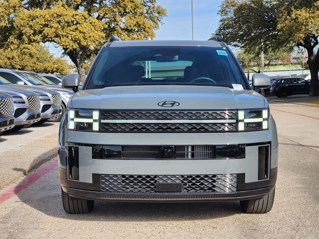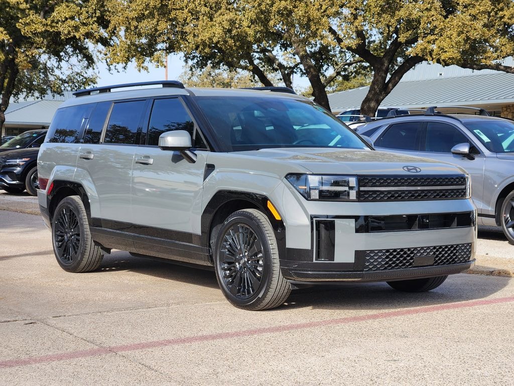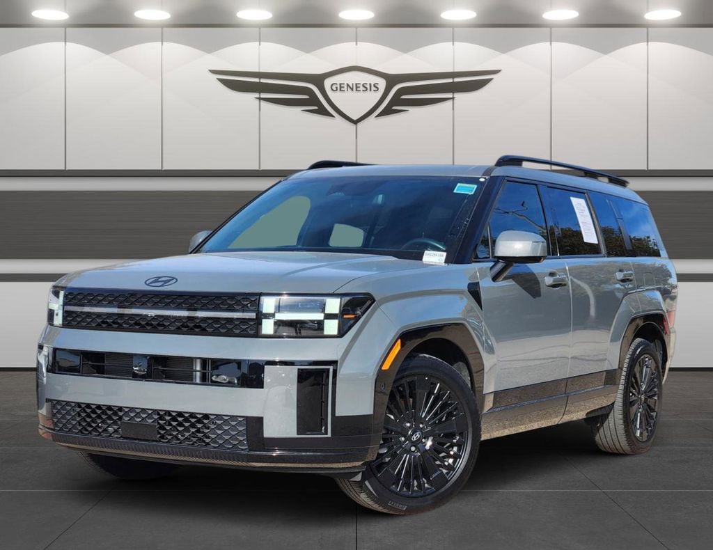 This 2025 Hampton Gray Hyundai Santa Fe Hybrid Calligraphy AWD is well equipped and includes these features and benefits: Option Group 01, Santa Fe Hybrid Calligraphy, I4, AWD, Hampton Gray, Exterior Parking Camera Rear, Power Liftgate, 12 Speakers, 3rd row seats: bench, 4-Wheel Disc Brakes, ABS brakes, Air Conditioning, All Season Fitted Liners, Alloy wheels, AM/FM radio: SiriusXM, Apple CarPlay & Android Auto, Auto High-beam Headlights, Auto-dimming Rear-View mirror, Automatic temperature control, Brake assist, Bumpers: body-color, Cargo Cover, Cargo Net, Cargo Organizer, Cargo Tray, Carpeted Floor Mats, Delay-off headlights, Driver door bin, Driver vanity mirror, Dual front impact airbags, Dual front side impact airbags, Electronic Stability Control, Emergency communication system, First Aid Kit, Four wheel independent suspension, Front anti-roll bar, Front Bucket Seats, Front Center Armrest, Front dual zone A/C, Front reading lights, Fully automatic headlights, Garage door transmitter: HomeLink, Heads-Up Display, Heated & Ventilated Front Bucket Seats, Heated door mirrors, Heated front seats, Heated rear seats, Heated steering wheel, Illuminated entry, Knee airbag, Leather steering wheel, Low tire pressure warning, Memory seat, Navigation System, Occupant sensing airbag, Outside temperature display, Overhead airbag, Overhead console, Panic alarm, Passenger door bin, Passenger vanity mirror, Power door mirrors, Power driver seat, Power moonroof, Power passenger seat, Power steering, Power windows, Premium Nappa Leather Seat Trim, Radio: AM/FM/HD Bose Premium Audio System, Rain sensing wipers, Rear anti-roll bar, Rear side impact airbag, Rear window defroster, Rear window wiper, Remote keyless entry, Roadside Assistance Kit, Security system, Speed control, Speed-sensing steering, Split folding rear seat, Spoiler, Steering wheel mounted audio controls, Tachometer, Telescoping steering wheel, Tilt steering wheel, Traction control, Trip computer, Turn signal indicator mirrors, Variably intermittent wipers, Ventilated front seats, Wheel Locks, and Wheels: 20" x 8.5J Unique Dark Finish Alloy. Santa Fe Hybrid Calligraphy, I4, AWD, Hampton Gray, Exterior Parking Camera Rear, Option Group 01, Power Liftgate.