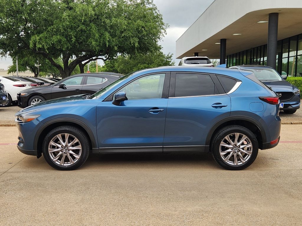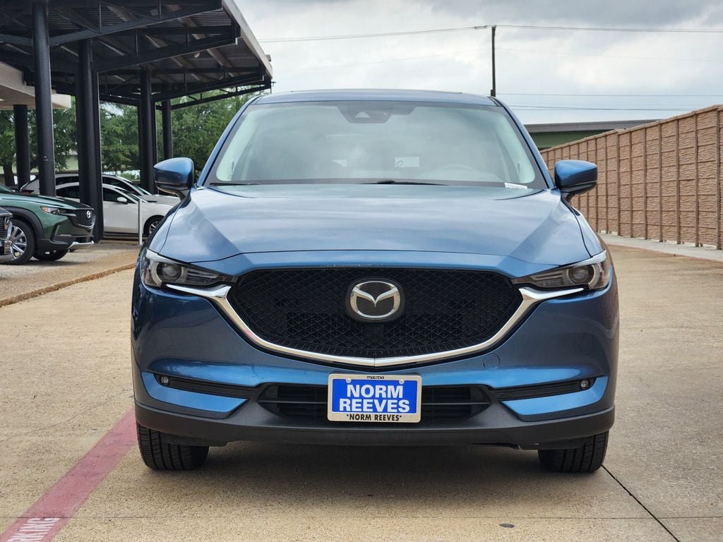 This 2020 Eternal Blue Mica Mazda CX-5 Grand Touring FWD is well equipped and includes these features and benefits: CX-5 Grand Touring, 4D Sport Utility, SKYACTIV® 2.5L 4-Cylinder DOHC 16V, 6-Speed Automatic, FWD, Eternal Blue Mica, Black Leather, AppLink/Apple CarPlay and Android Auto, Auto High-beam Headlights, Bose 10-Speaker Audio Sound System, Dual front impact airbags, Dual front side impact airbags, Electronic Stability Control, Emergency communication system, Exterior Parking Camera Rear, Four wheel independent suspension, Front anti-roll bar, Fully automatic headlights, Heated door mirrors, Heated front seats, Heated Front Sport Seats, Illuminated entry, Lane Departure Warning System, Leather Seat Trim, Memory seat, Panic alarm, Power door mirrors, Power driver seat, Power Liftgate, Power moonroof, Power passenger seat, Rain sensing wipers, Rear anti-roll bar, Remote keyless entry, Speed-sensing steering, Turn signal indicator mirrors, Wheels: 19" x 7J Aluminum Alloy w/Silver Finish, 10 Speakers, 4-Wheel Disc Brakes, 4.325 Axle Ratio, ABS brakes, Air Conditioning, AM/FM radio: SiriusXM, Auto-dimming Rear-View mirror, Automatic temperature control, Brake assist, Bumpers: body-color, Delay-off headlights, Driver door bin, Driver vanity mirror, Front Bucket Seats, Front Center Armrest, Front dual zone A/C, Front fog lights, Front reading lights, Garage door transmitter: HomeLink, Leather Shift Knob, Low tire pressure warning, Occupant sensing airbag, Outside temperature display, Overhead airbag, Overhead console, Passenger door bin, Passenger vanity mirror, Power steering, Power windows, Radio data system, Radio: AM/FM/HD Audio System, Rear reading lights, Rear seat center armrest, Rear window defroster, Rear window wiper, Speed control, Split folding rear seat, Spoiler, Steering wheel mounted audio controls, Tachometer, Telescoping steering wheel, Tilt steering wheel, Traction control, Trip computer, and Variably intermittent wipers. CX-5 Grand Touring, 4D Sport Utility, SKYACTIV® 2.5L 4-Cylinder DOHC 16V, 6-Speed Automatic, FWD, Eternal Blue Mica, Black Leather, AppLink/Apple CarPlay and Android Auto, Auto High-beam Headlights, Bose 10-Speaker Audio Sound System, Dual front impact airbags, Dual front side impact airbags, Electronic Stability Control, Emergency communication system, Exterior Parking Camera Rear, Four wheel independent suspension, Front anti-roll bar, Fully automatic headlights, Heated door mirrors, Heated front seats, Heated Front Sport Seats, Illuminated entry, Lane Departure Warning System, Leather Seat Trim, Memory seat, Panic alarm, Power door mirrors, Power driver seat, Power Liftgate, Power moonroof, Power passenger seat, Rain sensing wipers, Rear anti-roll bar, Remote keyless entry, Speed-sensing steering, Turn signal indicator mirrors, Wheels: 19" x 7J Aluminum Alloy w/Silver Finish. Dallas Fort Worth Arlington Carrollton Irving Hurst Euless Bedford Farmers Branch Denton Mansfield Garland Mesquite Richardson Burleson.